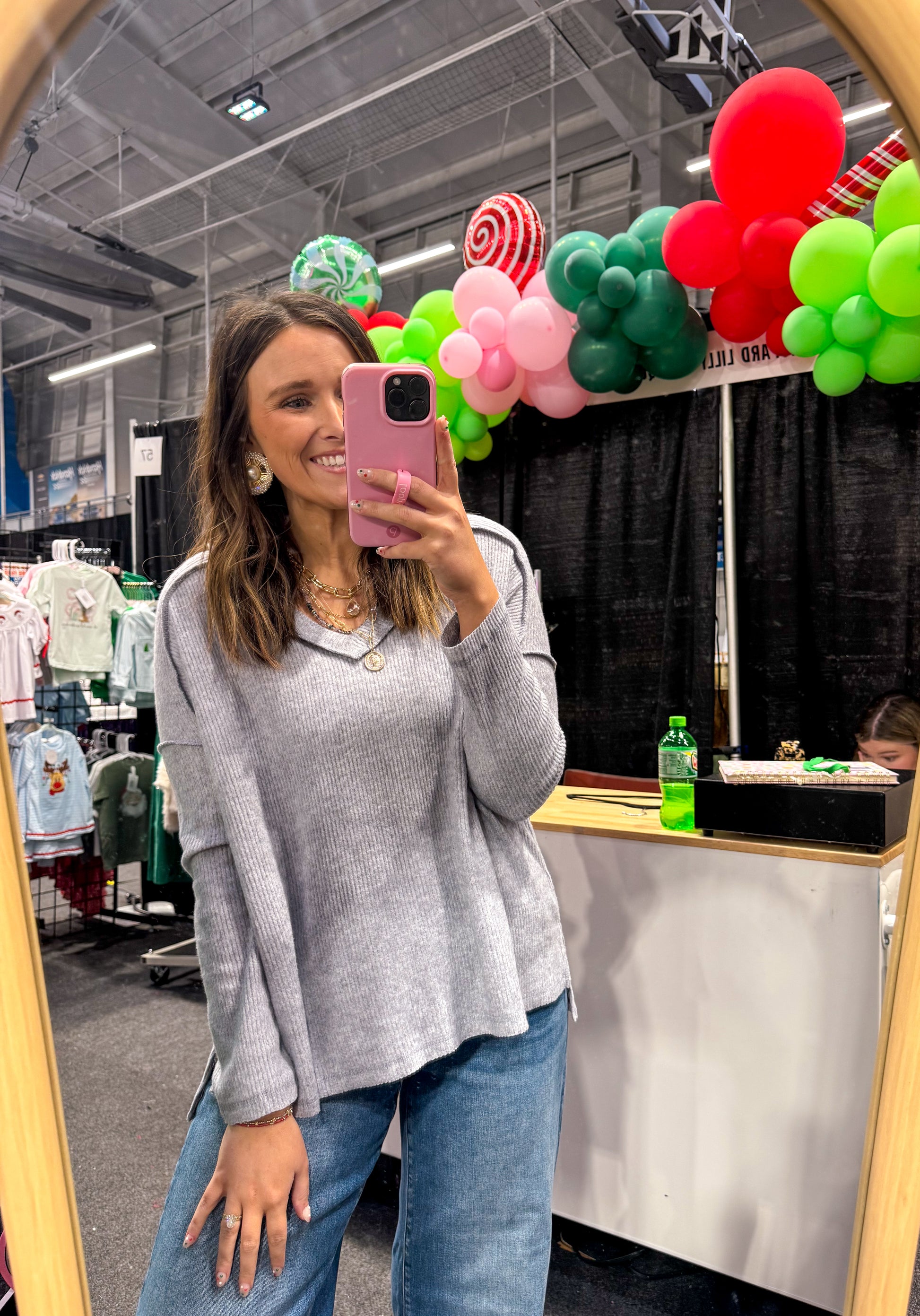 Ribbed Long Sleeve Top, H. Grey